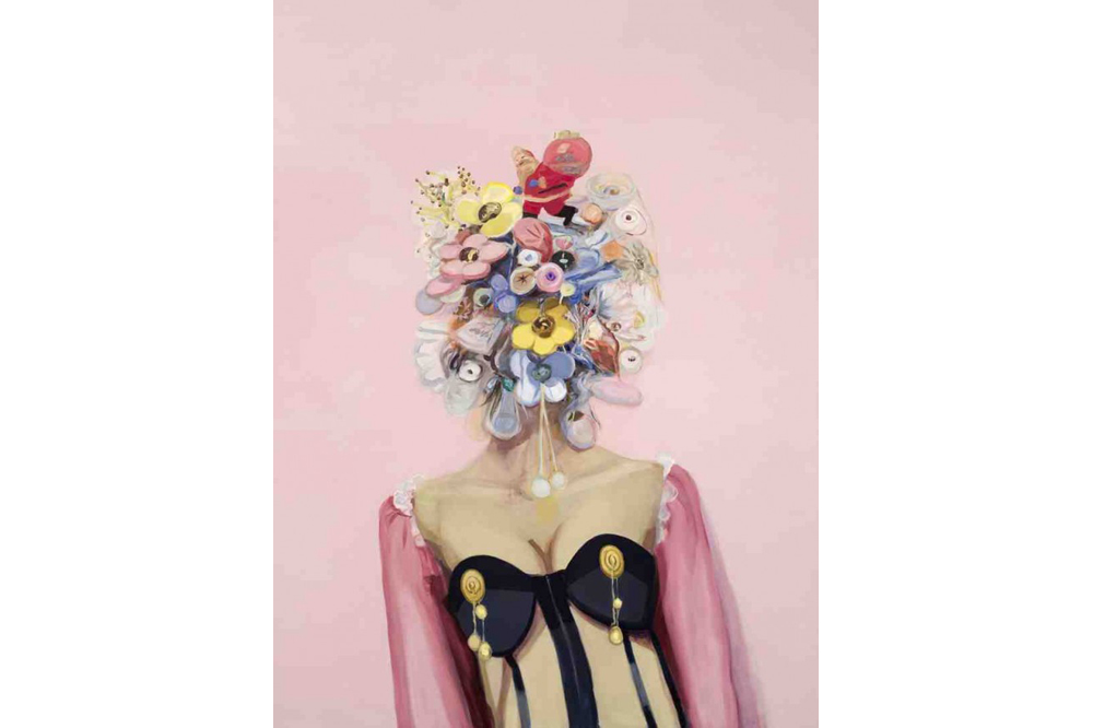 Of course, Werner’s treatment is entwined with her subject, women, who form a complicated sitter, a body politic. And because of this (and her source material in fashion magazines) we’re encouraged to take it personally when Werner folds a face, blurs a mouth, or doubles an eye. These are, then, comments on womanhood, our feminine contradictions and self-denial, our reflexive assertions of postulated will. We are these women, suffering under the weight of large hats, absurd decorations, our shirts open, our expressions eclipsed, our horizons blank. We pose for an open lens, which we defy and aggress and all the while lean in to.