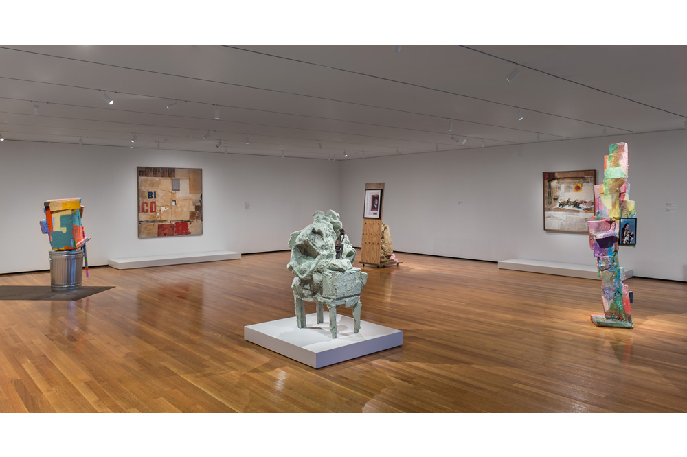 Nearing its centennial, however, the CMA is working at an update. A recent exhibition titled Gloria, curated by assistant curator of contemporary art Beau Rutland, evinces its new effort. Pairing contemporary sculptor Rachel Harrison with Robert Rauschenberg, Rutland centers the exhibition around Rauschenberg’s lauded “Combine,” Gloria (1956), a sculptural painting that pairs disparate things (newspaper clippings, one featuring the titular Gloria Vanderbilt), cryptic phrases, and images ripped from the pages of popular culture. A hole sits at its center. Gloria, widely considered to be one of the jewels of the CMA’s expansive collection, is an epochal work from the height of Rauschenberg’s output.