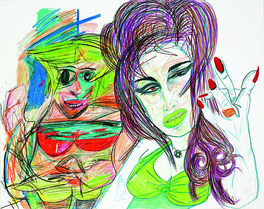 The more I learned, the more perverse the painting became. Especially when I learned that paired with Gloria Vanderbilt is this serial-killer nurse who essentially invented shaken-baby syndrome, really gruesomely. It was around then that I thought, Rachel Harrison would really get into this. Because of its formal qualities, but also that perversion of popular culture, where it’s taking the image of Gloria Vanderbilt getting married, what’s supposed to be the happiest day of one’s life, and then also this indictment of this serial killer, which represents the worst. Rachel turned out to be really interested, and that’s how it all began.