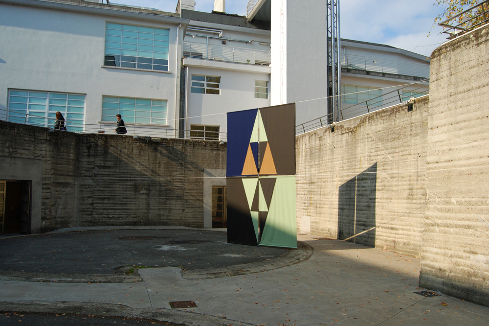 Emerging from the hut I fought anxious visions. The return of some embarrassing photograms from 1989: Navajo Indians making sand offerings in Paris; a contemporary artist trying haplessly to chat with an Australian native; tribal instruments among John Baldessari or Jeff Wall pieces. Was I reliving Magiciens de la Terre (1989), the regrettable, colonial French blockbuster in São Paulo? The aesthetic of the works; the legacy of the World’s Fairs, and their link to the Indigenous peoples; the exaltation of the primitive; the comparison between the “other” (exotic ceremonies and crafts) and the contemporary; the Eurocentric ethnographies of African or Amazonian cultures: from the entrance, all appeared queasily reminiscent of a dark chapter of cultural appropriation. Thankfully, the spell was quickly broken. Things improved step-by-step upon crossing over into Felipe Mujica’s metaphorical territory, The Unknown Universities (2016). The colorful geometric shapes and flags delimited a numinous land, not an exotic one.