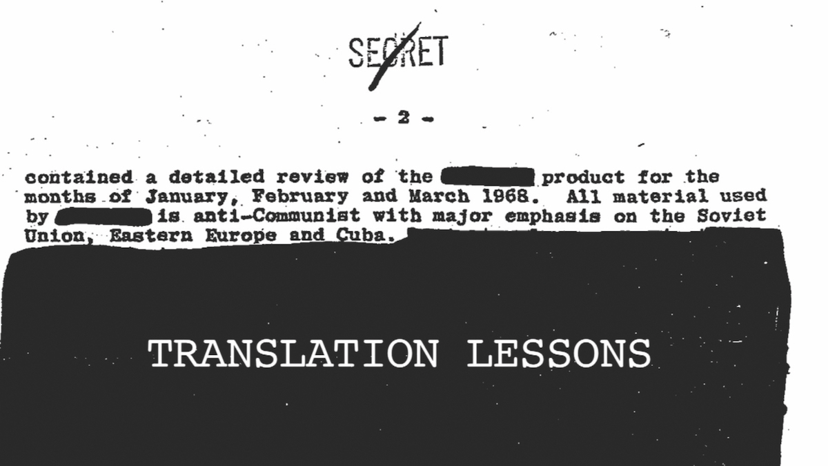 I would like to mention, perhaps due to its exceptional nature among your works with declassified documents and due to its touch of humor, the video Translation Lessons (2016). In this work there is a painful and serious background, but there is also a moment of relaxation.