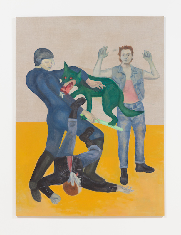 Although Dean’s essay addressed the present moment, a more thorough genealogy of the history of painting finds traces of the unreal and otherworldly in American art throughout the twentieth century. In the winter of 1943, Alfred H. Barr, the director of the Museum of Modern Art, used the word “Magic Realism” to refer to painters who coupled a painterly “realistic technique” with “improbable, dreamlike, or fantastic visions.” Art historian Angela Miller has argued that this turn to the “social unworldly” in American art in the 1940s could be understood as a type of “queer symbolic realism,” forms that were adopted to counter the crisis of subjectivity set in train with the advent of war and fascism. “Private symbols replaced collective forms of belief and value,” Miller writes, “forms that had proven to be too susceptible to fascistic manipulation.” Miller insisted that the painterly procedures of queer symbolic realists of the 1940s should not be confused with Surrealism, and Dean, separately, makes a similar point about the contemporary unreal. In both cases, these artists summon a strange reality, not a surreality. Rejecting a formulaic approach to the unconscious, painters like Mulleady – and peers like Nicole Eisenman and Tala Madani – seek to reclaim a fundamental strangeness that is found at the core of everyday life.