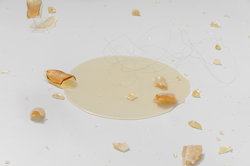 For the installation, you made sugar casts of your hands that hang in space as an installation, and they gradually degrade, they break, they melt, and so on. So that’s actually the goal of that installation, that it continues to live and work . . .