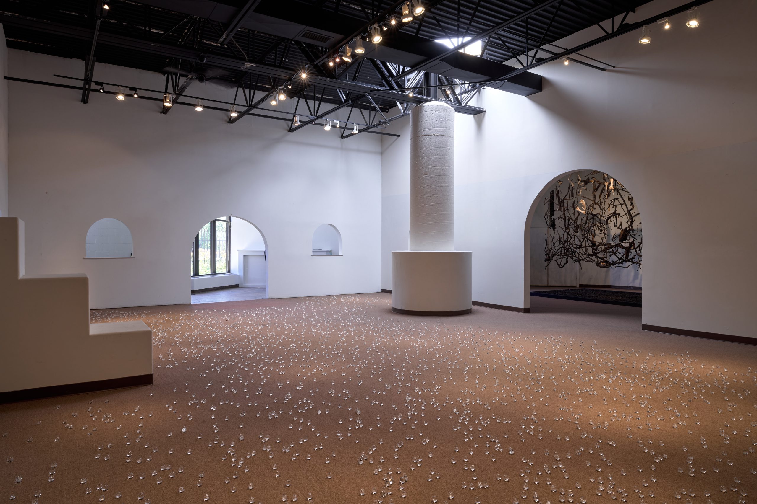 A few miles outside of Santa Fe is a former foundry turned gallery space known as Finquita. In the main building, David Horvitz’s installation flock of wingless birds (2025) fills the floor of a large room with 4,555 glass marbles, representing the number of Japanese men incarcerated at the nearby Santa Fe Internment Camp during World War II. Containing sand from the camp, each marble is a reminder of each man’s life, providing, quite directly, a window into the historical layers of its location. During an artists’ panel discussion organized over the opening weekend of SITE Santa Fe, curator Cecilia Alemani asked Horvitz, “Do you think of flock of wingless birds as a memorial?” Horvitz replied, “What even is a memorial?” He then described how each of these glass marbles is a universe unto itself—the universe of each man’s life, their world—which was destroyed due to their kidnapping and detainment by the federal government. But, as Horvitz pointed out, a memorial can suggest a certain remove from the past. He acknowledged that ICE is perpetuating these same acts of kidnapping and detainment in the United States. The work offers proximity, not distance, a return, not a departure. Horvitz also noted that glass is a material capable of resonance—and that he sees the piece carrying the presence of these 4,555 men in Santa Fe.