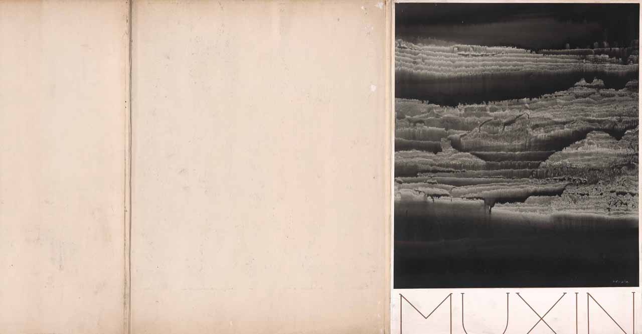 This innovative combination makes the work a singular contribution to Chinese art. Mu Xin apparently began by coating watercolor paper with a layer of thinned ink or gouache. Then he pressed another paper to the surface. Removing the top sheet produced amorphous, sponge-like forms reminiscent of geological strata or eroded craters on the moon. He then embellished these forms produced by chance with a brush, articulating them into landscape features.