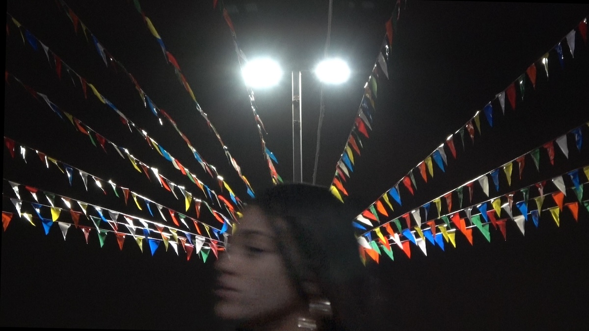 VM: You know, I haven’t thought about that, and it’s something I’ll take with me from this conversation. I think part of it, too, might just be that I’m a bit of a magpie, you know, filming lights. But I think it’s a way to find abstraction formally. Cameras have a hard time with filming light, both artificial light and even natural light, like fire. Filming light is a way to formally produce a sense of rupture—or a sense that something is not fully able to be apprehended.