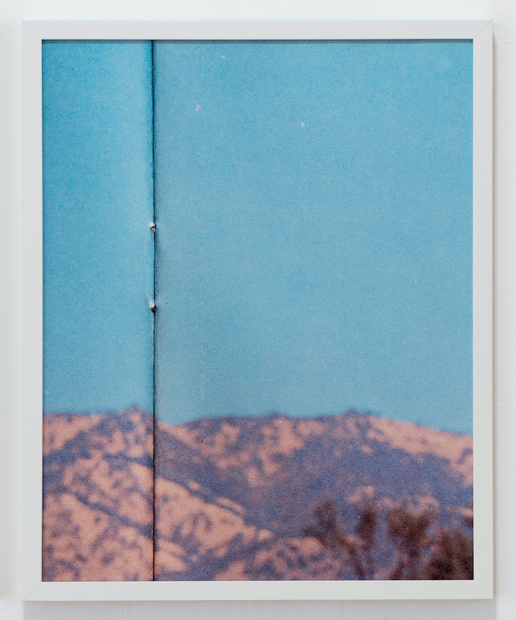 Pacifico Silano’s practice is based in appropriating and rephotographing the imagery in gay erotica magazines published between 1969 and the late 1980s. In less-adept hands, the structures and chromatics that accompany such appropriation would simply result in the further aestheticization of consumption-ready material. But in I Won’t Last a Day Without You, the artist’s solo show at Portland’s Melanie Flood Projects, this subject matter is transmuted from merely steamy to a more complicated space, where desire meets constraint and hints at loss. In Silano’s photographs, the raster dots, folds, and stapled bindings of the source images all remain visible, yet bodies are for the most part cropped out. Instead, the artist foregrounds the subjects’ surroundings: close-up scenes in domestic milieus give way to rocky plateaus, distant mountains, skies, and sunsets, all pointing the viewer toward the emancipatory potential of unrestricted spaces. However, a historical background creeps in to contextualize their intimacy as a foil to the social upheavals of the AIDS crisis, with comparisons to our current tumultuous moment at the end of a presidency characterized by cruelty.