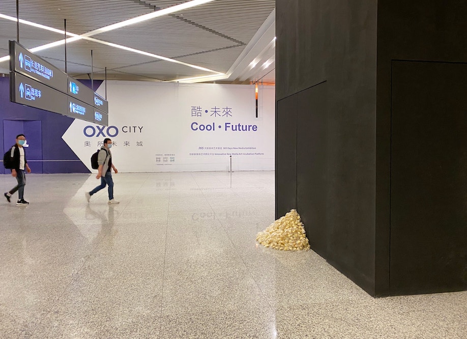 In recent weeks, piles of fortune cookies materialized around the world – in art spaces, restaurants, and private homes in Dubai, Beijing, Montevideo, and across the Global North. In Shanghai’s Hongqiao Airport; filling up a baby grand in Knoxville; a museum locker in Düsseldorf; a broken-down Suburban parked in Niwot, Colorado; in a forest glade in Sarvisalo, Finland. The wrappers were variously clear, or foiled in red, gold, silver, or blue. In the West Village, Tel Aviv, and Stinson Beach, CA, the cookies were unwrapped and left to go stale.