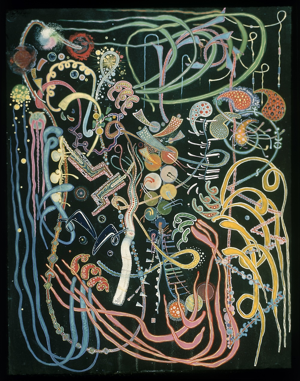 Harry Smith, Ko Ko [Jazz Painting], c. 1949–51. Lightbox projection from 35mm slide of lost original painting. Estate of Jordan Belson.