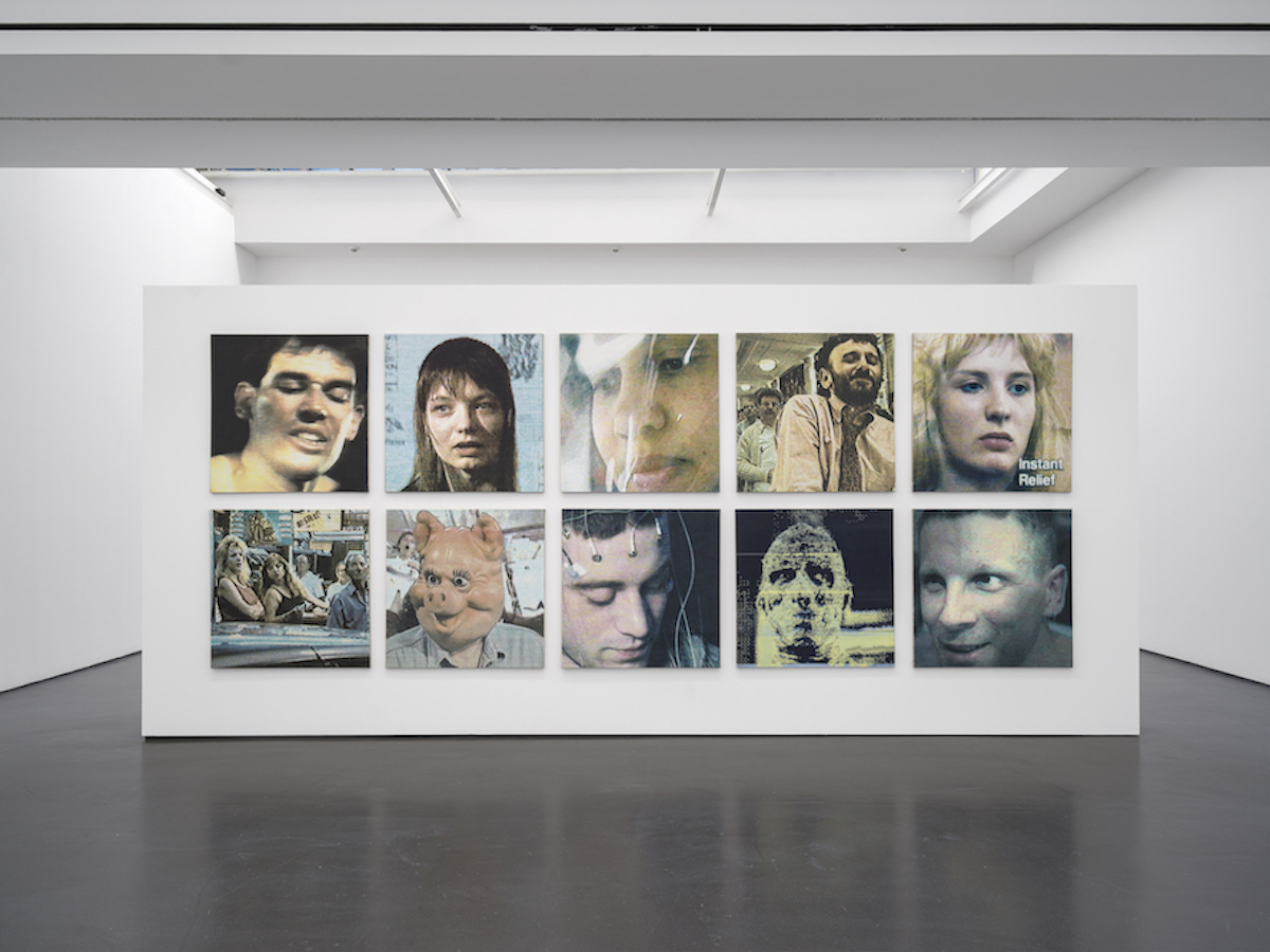 In 1980s West Germany, when public-access channels first began streaming into living rooms, Matthias Groebel started building a painting machine to compete with the captivating powers of a pixelated image. His story feels like something out of science fiction. With the help of his self-made machine, Groebel reroutes the faces in his paintings—each with their own depraved, clinical, and sexual undertones—straight from the TV screen to the canvas. At the Kunstverein für die Rheinlande und Westfalen in Düsseldorf, Groebel’s exhibition A Change in Weather (Broadcast Material 1989–2001) featured his motley cast of portraits. Rooted in the gritty world of cyberpunk, Groebel’s paintings explore both the pixilated, blue-tinged aesthetics and the flood of random and “poor” images that accompanied new media’s rise.