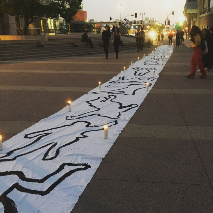 Protest work by Metabolic Studio outside MOCA’s Carl Andre exhibition. Photo by Sarah Williams / Women’s Center for Creative Work.
