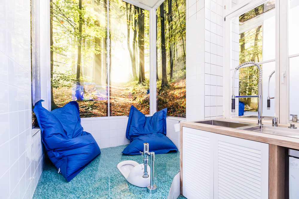 Twenty-six years ago, Judith Butler proposed an approach to understanding gender as performative in her influential book Gender Trouble. Using parody – most notably, through drag – one could affect subtle yet meaningful destabilizations of gender identity, previously regarded as an ontological property. This theory undoubtedly had crucial effects in terms of asserting non-binary approaches to gender, but its incidental resurrection (like a poorly thought-out séance) in the context of the biennale, is politically disingenuous. While Butler rightly pointed to the necessity of embracing the fluidity of gender, DIS points to the fluidity of everything and, consequently, nothing in particular. Wellness, big data, cultural capital, virtual reality, war – all hot topics of the “present” – reappear frequently, in this five-venue exhibition, as uncritical reflections, filtered ironically via Snapchat or Oculus Rift.