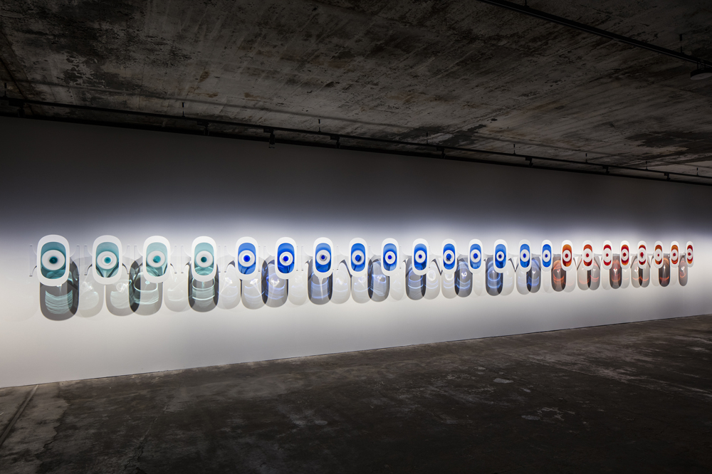 A series of backlit advertisements by LIT lure passersby from the foyer of AdK and editions of TELFAR‘s custom-designed, off-the-shoulder tank tops are for sale at the entrance. Debora Delmar Corp. has transformed the AdK cafe into a juice-bar called MINT, taking its name from the acronym for developing economic powers Mexico, Indonesia, Nigeria, and Turkey. The fully-staffed and operational bar is designed to mimic health-driven lifestyle chains, complete with up-cycled furniture and posters of celebrities enjoying green juices. Like MINT, and artist Yngve Holen’s “Hater Blocker” contact lenses, many of the for-profit facets of the biennial parody corporate start-up culture, while capitalizing, in a very real sense, on the self-congratulatory irony pervading the biennial’s concept.