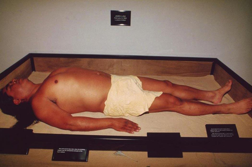 The genocide of the Indigenous peoples of California is among the worst to occur on this continent – and among the most recent. Luna strategically employed humor and kitsch to entice his audience to confront this horrific reality. He skillfully interplayed tragedy and comedy to awaken audiences to the full humanity those that have been systematically dehumanized by mainstream society.