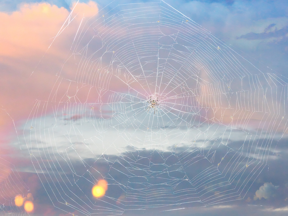 Weather Room is bracketed by two photos that highlight the co-dependent relationship between the natural and the manufactured. In the front space, Butterfly Museum (2020) depicts a verdant burst of tropical foliage housed in what appears to be an expansively-windowed Modernist structure. At the back of the gallery, Skeleton Lake (2020) intrudes on the charred interior of a recently-incinerated, cordoned off cabin on a quiet Muskoka lake. Skeleton Lake, reminiscent of photographer John Divola’s California beachfront Zuma series, is one of a few nods to the contemporary canon in the exhibition, with echoes of Nancy Holt, Nam June Paik, and the art hubs New York City, Paris, and Venice. Just as Venice is a synecdoche for both the artworld and Global Warming’s rising tides, the lone spider tending its web stands in for all the surviving networks of non-human life – a hint that Pugen’s apocalypse is selective, not total.
