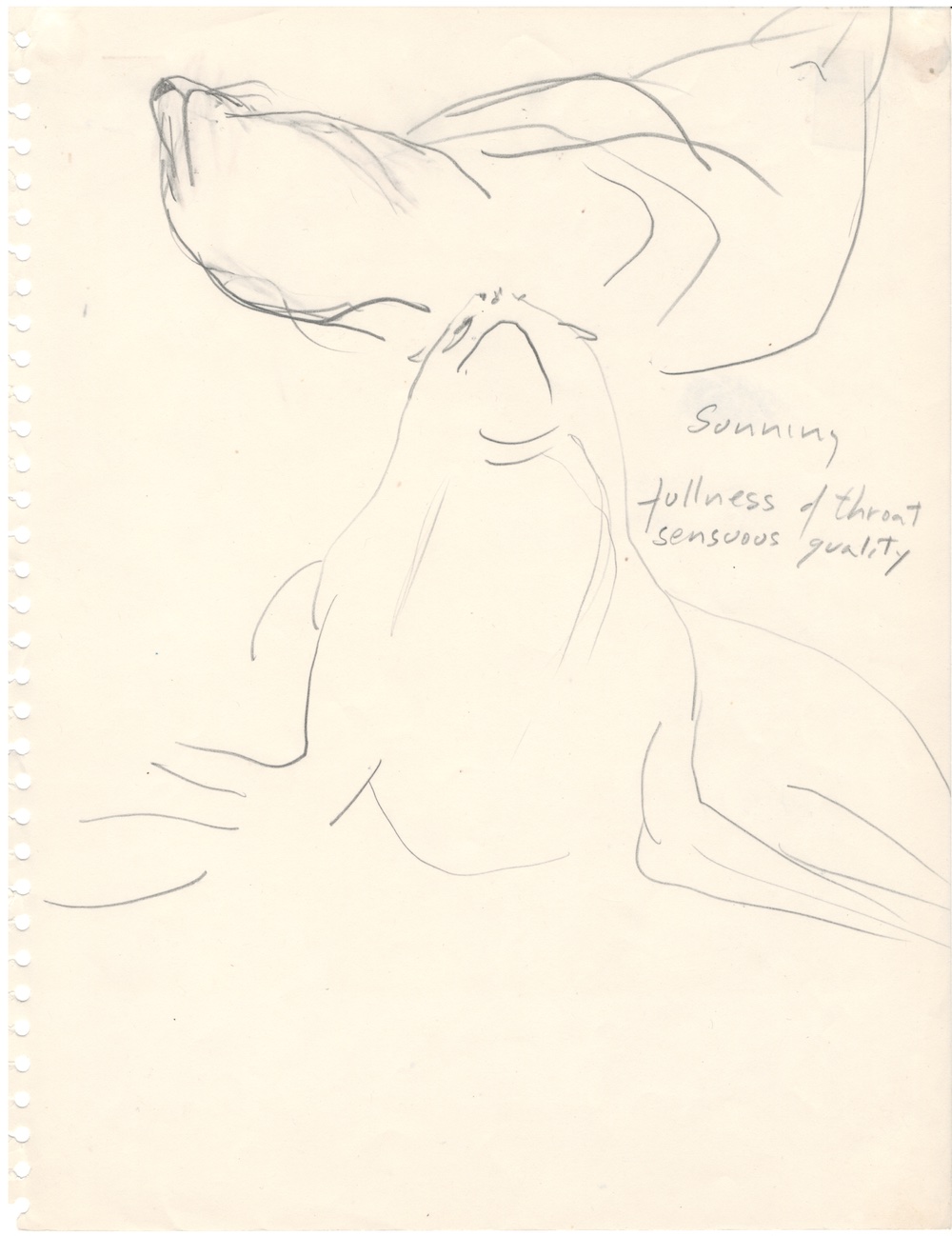 Simone Forti, “Sea Lions Sunning Fullness of Throat Sensuous Quality (Animal Study),” 1968. Courtesy of The Box, Los Angeles.
