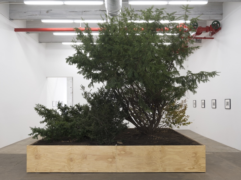 In an enormous wooden container sat the planted terrarium sculpture Circa ’77 (1995), for which Burr had recreated various species of park fauna. Like the folded-mirror motif, Burr’s cruising botany installations respond to a multitude of sites, including Sonsbeek International sculpture exhibition, where he created An American Garden in 1993, a park-like sculpture garden. His plant-potter works draw on the countercurrents of control and surveillance that undergird the practice of landscape architecture—and, recreated in the 21st century, these works are as prescient as ever given the ongoing militarization of the police and expanding video surveillance of public space.